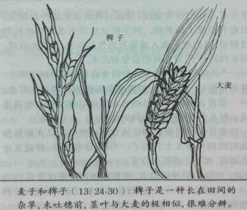 13:24 稗子比喻中的“好种”是“天国之子”(13:38),是神的道所结的果子(彼前1:23)。“撒…在田里”表示天国之子散布“世界”各地(13:38)。“世界”含有双重意义,就地理来说是指地球,就种族来说是指人类。哪里有“麦子”哪里就有撒但的活动,要把“稗子”撒在麦子中间。“稗子”是冒充的天国之子。比喻中的“恶者之子”不是指不信的人,而是指有名无实的假信徒(比较13:38;约8:38-44)。
