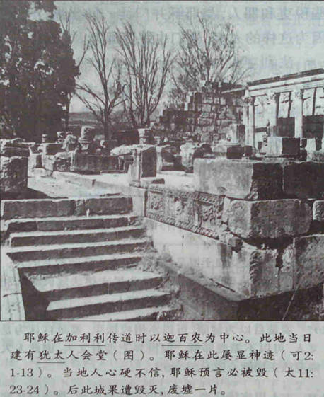 1:21 迦百农位于加利利海西北,通往今大马士革的商路上,耶稣和门徒常来这城住宿。