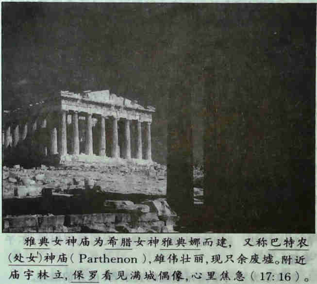 17:16 保罗时代的雅典虽仍是个文化中心,有一所出名的大学;可是在政治与商业上,早非五百年前可比。保罗本来没有打算在此传道,但见偶像遍城,心里焦急,单独展开布道工作。
