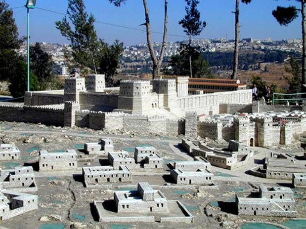 从北面看圣殿山,中央的塔楼就是安东尼亚堡(模型)