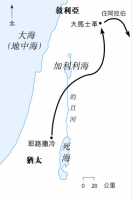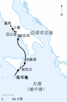 保罗在凯撒利亚起程,展开了他到罗马的三千二百公里旅程。船沿着海岸线向北航行,在每拉保罗被带上一艘往意大利的船,到了革尼土后再转往克里特岛,在佳澳港登岸。下一站是非尼基,可是船被风吹向南,到了高大岛,后来又飘流了两星期,在马耳他岛搁浅。