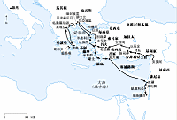 保罗在第三次布道旅程又回到基利家和加拉太,这一次他直接去亚西亚的以弗所,探访了亚西亚的其他城市后,才回到马其顿和亚该亚。(18:23-23:30)