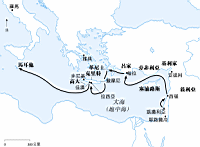 保罗由特罗亚到米利都