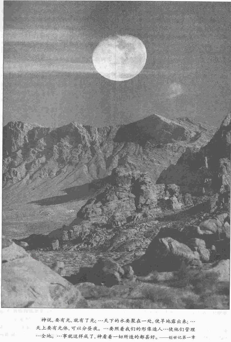 本书第一章讲的就是世界的来历。神怎样从空虚混沌中创造了一个有秩序的世界,祂所造的世界完整无缺,是“好的”。人是祂所造,在地球上的地位超出所有的造物;有男有女,是照祂的形像造的。有人格、理性和道德意识;会思想,有感情和意志;可以和天父来往、谈话,爱祂,也享受祂的爱。因为人有神的形像,所以神又赋人以管治这个受造世界的责任。