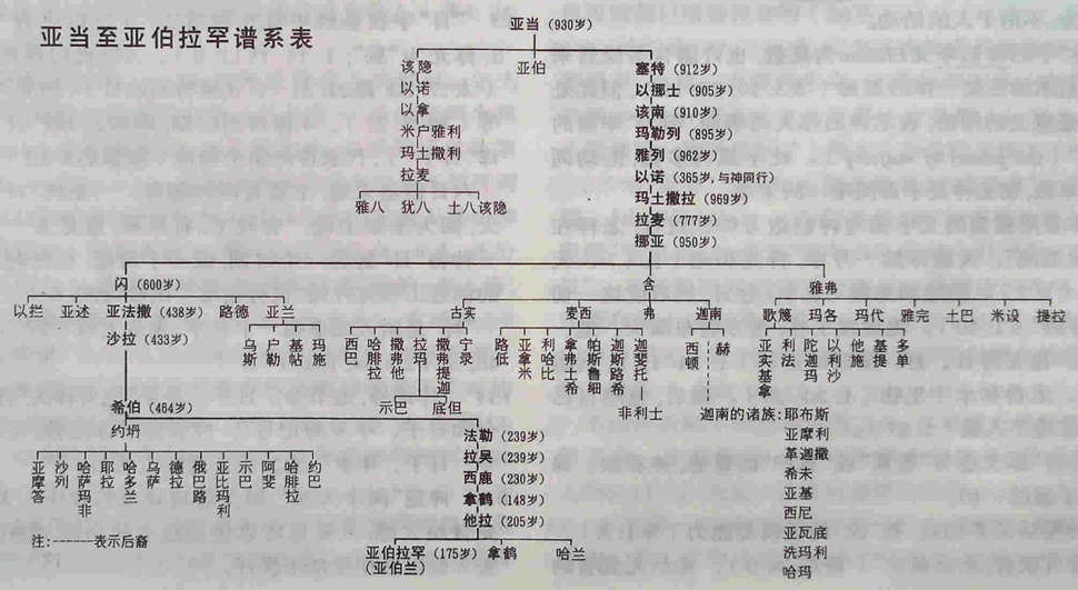 1,挪亚的三个儿子,闪与含为主要的种族,包括亚述与巴比伦(合称为亚甲)。迦南人与腓尼基人为含系。希伯来人、亚摩利人、亚兰人、摩押人、亚扪人、以东人与阿拉伯人为闪系。