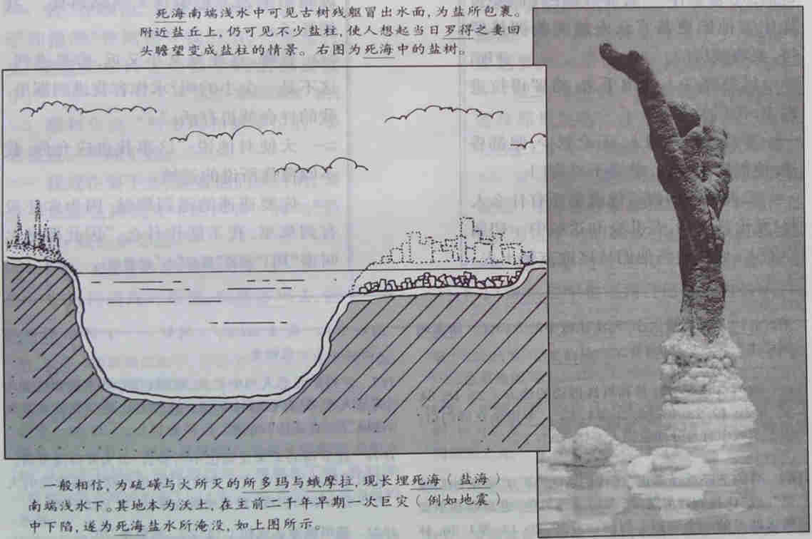 19:28 神藉火山爆发和地震来施行惩罚。考古学家发现当地满布硫磺、沥青的沉渣,二城现沉于死海南端水底下,近年水位上升,浸盖面积较前大。考古学家在附近一块高丘上,发现这些城邑当日举行庆典的场所;并发现在亚伯拉罕以前,这一带地方已有人烟;但亚伯拉罕以后,变成荒墟。
