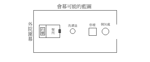 会幕 会幕( dxewOm lh,ao ~o{hel mo^'e{d)自先是在出廿七21提说,这是神与以色列人相会的地方。中文翻译这个神与以色列人相会的地方有点混乱。会幕多时与帐幕通用,正如出卅九32说:“会幕,就是帐幕”。35然而意思并不明朗,因为中文圣经的帐幕包括了两个不同希伯来文的翻译:(1) wK;V]mi mishka{n从动词 wk'V; sha{kan居住36引申出来,在与会幕有关的经文外,主要中文翻译是居所,这字表露神吩咐以色列人造会幕的目的:“当为我造圣所,使我可以住( wk'V; sha{kan)在他们中间,制造帐幕( wK;V]m,i mishka{n)和其中的一切器具,都要照我所指示你的样式。”(出廿五8-9)所以这字基本意义是指出会幕的用途,是作为神居住人间的象征,而没有建筑物类型的含意,因此除了五经外,其他经节都将 wK;V]mI ; mishka{n翻译作神的居所(代下廿九6;诗四十三3,四十六4,七十四7,八十四1,一三二5、7;结卅七27等)。(2) lh,ao o{hel,是旧约以色列人作为居住用途的帐棚,这字界定住所种类是用布幕制造,既然神的居所建筑材料是用布帐为墙, lh,a o{hel可以是指会幕的布幔,中文翻译为罩棚,也可以指整个神的居所,就翻译为帐幕37(这就与 wK;V]mi mishka{n混乱}和会幕38(这与 d[ewOm lheao ~o{hel mo^'e{d混乱}。