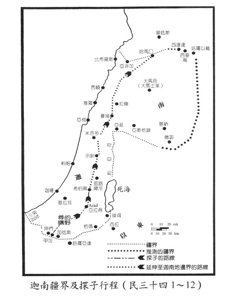 1~5. 千百年来,牧场的尺寸一直是考验解经家几何方面之想象力的课题。第4节似乎规定从城墙量起,牧场的范围应该有一千肘(500码450公尺)。而按照第5节,整个牧场则是二千肘乘二千肘的正方形。城邑必定要极之微小,这两节的要求才能达到。