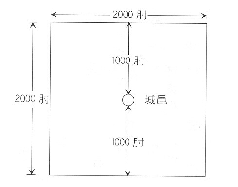 城邑若是扩张怎样处理,却无法肯定。最有可能的说法,是将城邑视为正方形,再在周边加上一千肘,以致牧场的总面积略多于二千肘见方。313