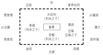摩西、亚伦、米利暗、约书亚、迦勒、以利亚撒、可拉、巴兰