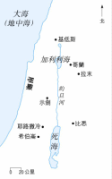 应许地的疆界是从南面寻的旷野和加低斯到北面的利布哈马和利比拉,从西面大海(即地中海)海岸到东面约旦河,加利利也包括在内。