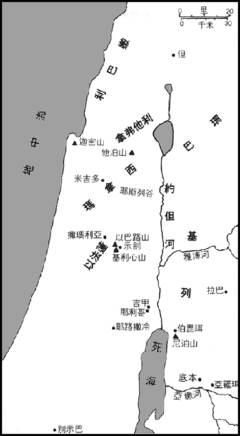 突然间我们发觉自己读的是另一个圣约!似乎可以肯定,以色列人变得习惯于这项经常性(可能每年一度)更新他们与上帝圣约的仪式,因此,这个重复的主旨将不致使古代读者感到惊讶。我们也必须记得申命记写作的性质;无疑的,作者有意强调以色列人对上帝应尽圣约的义务至为重要,而他也成功达成其目的,这成功部分要归功于重复叙述。因此,像先前的章节一样,作者详细提起往事作为这新约的开始(29-30章)。从地理位置上大体而言,摩押与本书开头的背景相同(一1);以色列人就是从摩押领土渡约但河而攻进应许之地的(见下图)。