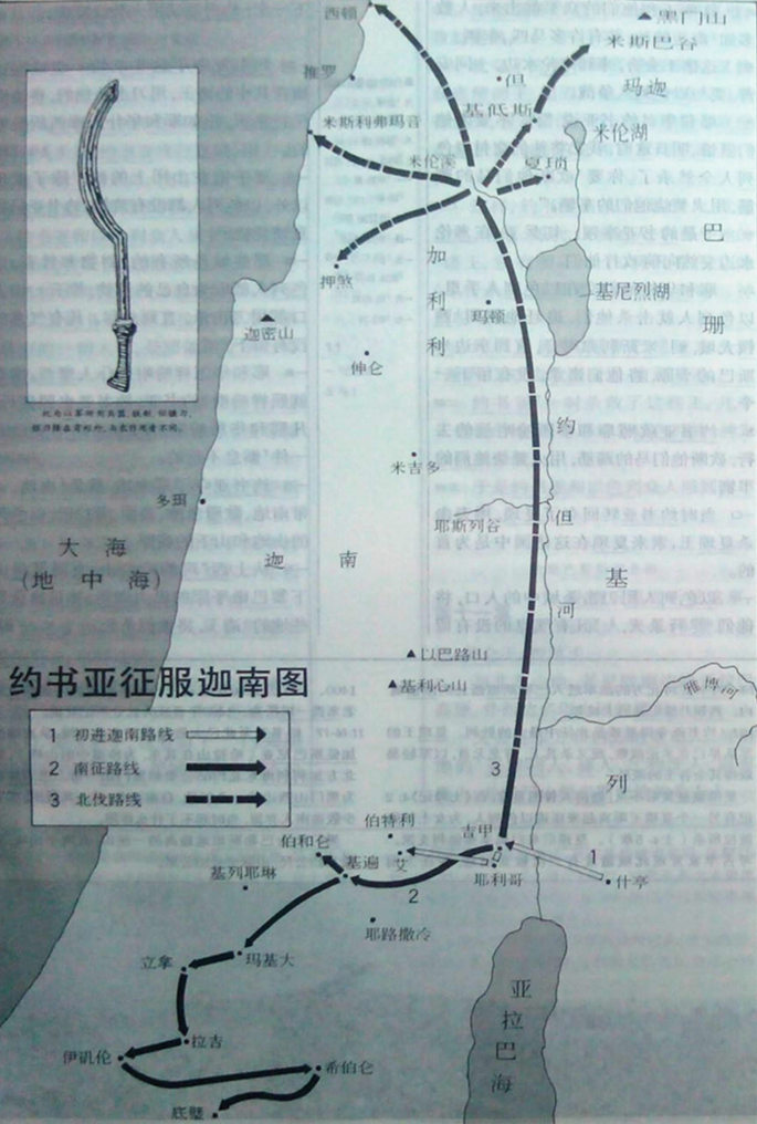 11:23 以色列人南征北讨,大小战役无数,一共征战了六、七年。本书详加记载的著名战事计有:1,耶利哥城之役(6:12-27);2,艾城和伯特利之役(7:2-8:29);3,讨伐南方联盟之役(10:1-27);4,玛基大之役(10:28);5,立拿之役(10:29-30);6,拉吉之役(10:31-32);7,基色之役(10:33);8,伊矶伦之役(10:34-35);9,希伯仑之役(10:36-37);10,底壁之役(10:38-39);11,讨伐北方联盟之役(11:1-9);12,夏琐之役(11:10-11);13,征讨北方诸城之役(11:12-15)。现在战争已经过去,“国中太平”。