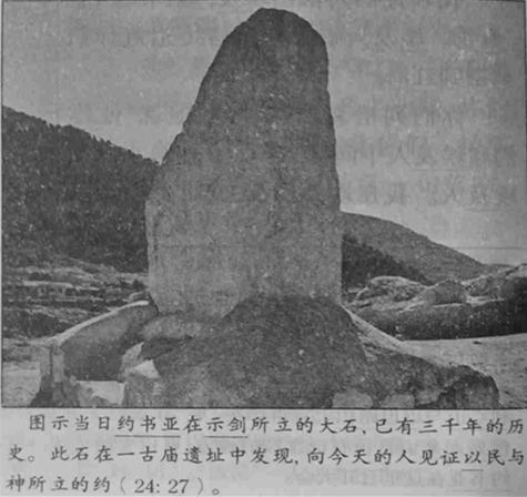 24:27 以色列人在此重申前约,立巨石为记。这是约书亚进入迦南地后以民第七次立石,以前六次见4:20;7:26;8:29,32;10:27;22:27。有人将永远被毁的耶利哥也当作神在以色列人中履行应许、施行拯救的见证。看见这些石头和废墟,从古到今的人应思念神的大爱与公义,而以色列人的历史就是最好的证明。