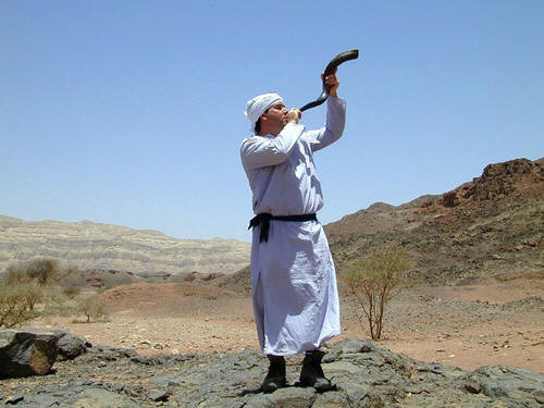 六4~5 吹角传信号 本段所指的号角是公绵羊的角。羊角能够吹奏好几个不同的音调,但却不能奏出旋律。因此它的主要用途是在崇拜或战事中传信号。这乐器独特的外形,是把羊角在热水中浸软,加以扭曲压扁造成的。战争时的传信号方式有几个。防线和野战都经常使用烽火。有时高举的杖或短枪可以传达简单的命令。有证据证实在晚铜器时代(这个时代),埃及在军事和宗教上,都使用号筒发信号。祭司的角声据信包括了长短号声作为密码。