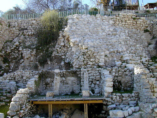 十1 耶路撒冷的晚铜器时代文物 这时代的耶路撒冷大小只有十亩左右,座落于今日城墙南面,南北走向的山脊上面。人口应该不会超过一千。山脊顶部只有四百呎宽,长度约为一千五百呎。在此出土的晚铜器时代文物颇为稀少,只集中在山脊东北缘的 G 区里面。所发现的包括某个不知名建筑的地基,和一座巨型的石造阳台。