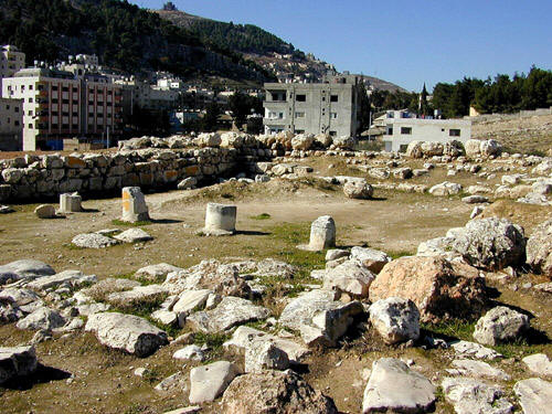 九7 基利心山 基利心山麓上的人无疑可以让示剑的人听见他的声音。基利心山紧贴城南,天然的音响效果容许本段冲突的发生。距离示剑不远的山脚,有一处突出的山岩,经常被指为本段事件发生的地点。多个世纪以前的庙宇的遗址,当时应该仍然安在。