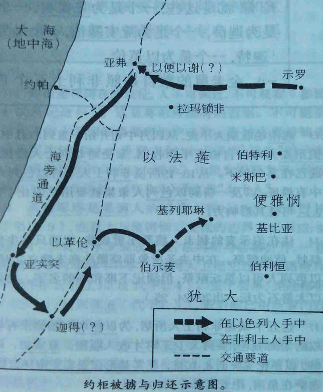5:11 约柜接连移放了三处地方,每到一城,瘟疫随生,范围之广,死亡之多,可从“合城呼号,声音上达于天”的话(12节)看出,证明确是耶和华神的手重重落在他们身上。