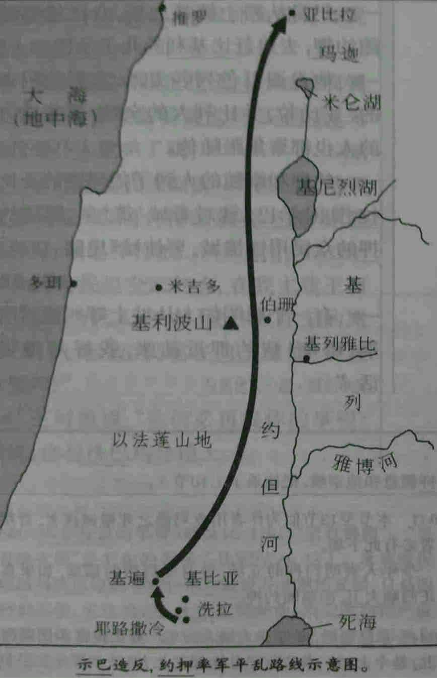 20:14 示巴造反,四处诱人加入叛军。亚比拉在米伦湖西北,是个大城。本节所记各地都在北方。