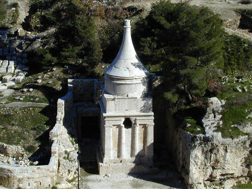 十八18 纪念石柱 乌加列史诗《阿赫特》(主前约1600年)提到为子者的责任之一,是为祖先神明竖立石碑或石柱。没有儿子(在生?)的押沙龙,只有自己动手立柱。这事颇具讽刺性,因为他自己也不是葬于家冢。他自立的纪念碑成了失败生命的记号。今日位于西珥万村(Silwan;与耶路撒冷隔着汲沦溪谷遥遥相对),称为押沙龙墓的古墓,是很后期的建筑(希律时代)。