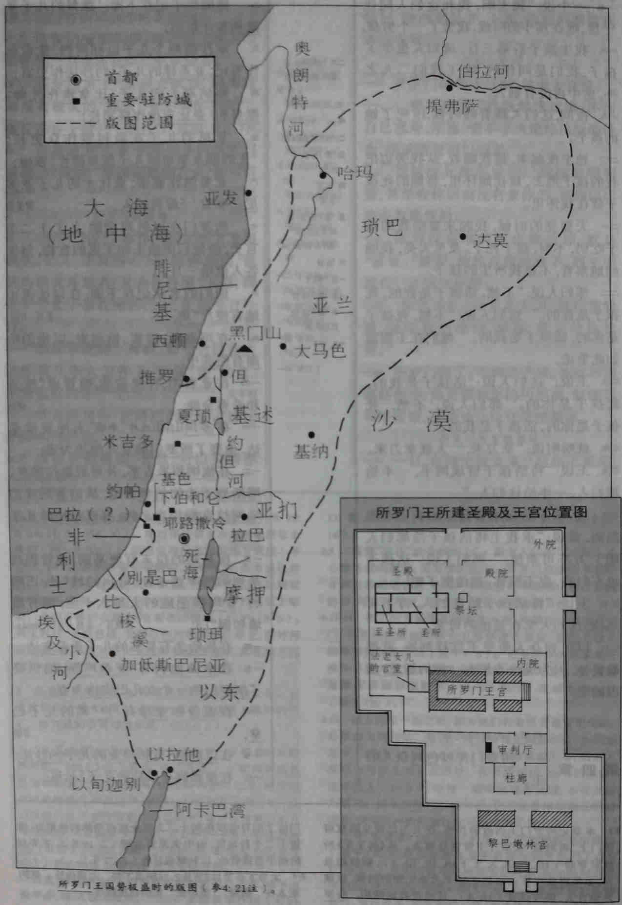 4:24-25 提弗萨为幼发拉底河西岸的大城。迦萨在巴勒斯坦地最西南,位于埃及边界上。“从提弗萨直到迦萨”,包括了进贡之国在内的疆土。等于从前说“从但到别是巴”(士20:1;撒下24:2),都是从极北到极南之地的“全国”的意思,不过现在国土范围已大了许多。但在约旦河之北端,别是巴在迦南地的边缘。