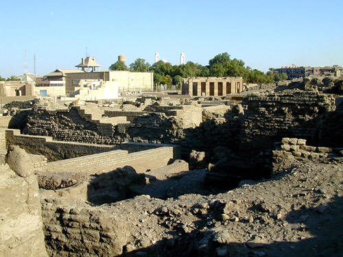 四十三9 答比匿的法老王宫 德芬纳遗址的挖掘焦点是一个巨大的正方形房屋。按考证来自扎伊尔斯时代(Saite Period;主前七至六世纪,以首都扎伊尔斯〔Sais〕为名),大概是总督的住宅兼行政中心。这房屋可能就是本节的「法老王宫」,因为全体官员都被视作王室权力的延伸。先知在其泥砖院子中奠基,埋藏石头之举很容易可以象征统治者的转换(译作「灰泥」的字眼全本圣经只在此出现一次,这翻译是按照:撒下十二31;尼三14的相关字眼)。
