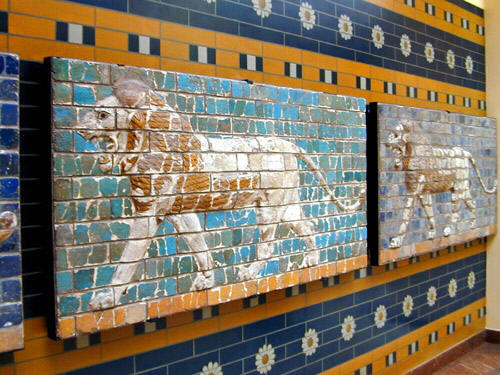 三十二2 狮子/大鱼 排句中以狮子和怪兽(龙,和合本:「大鱼」)对偶,我们现代人或许会觉得奇怪,但在以西结的世界中却绝不异常。巴比伦有名的伊施他尔门以及通往这城门的游行大道两旁的上釉砖壁画,是狮子和龙交替的设计。此外,在美索不达米亚的神话传统中,兼有狮子和龙特色的复合性活物十分常见。《拉卜的神话》中的拉卜尤然。主前第二千年纪初叶以降,君王已经自比为狮子和龙。