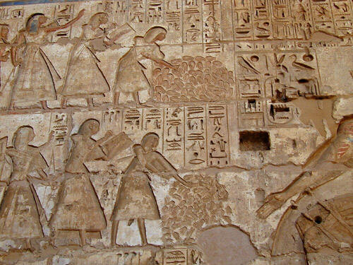 五8 不能读那文字 虽然部分学者提出这些字是用某种隐晦的语言写成(如:古波斯楔形文字),经文并没有表示所用的不是当地常用的亚兰语。当时亚兰文和希伯来文一样,写时都是没有元音,并且字与字之间有时是不留间隔的,换言之墙上所写的可能是:srplqtanm(mn~tqlprs)。在何处分字和加插哪些元音人言人殊,使他们不能有把握地读出字句,提供解释。历史上另一个写着含义隐晦信息的例子,是主前七世纪里底亚王居格斯梦中看见「亚述巴尼帕」一名被写出来,同时听到声音鼓励他向辛梅里人发动战事。