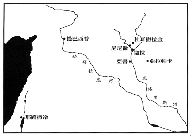 21 A. Parrot, Nineveh and the Old Testament, Studies in Biblical Archaeology 3 (SCM Press, 1955), pp.85~86;由 B. E. Hooke 译自 Ninive et l~Ancien Testament (Delachaux et Niestle*, 21955);参 C. F. Keil, pp.390~391; Trible, pp.175~176; D. W. B. Robinson, 'Jonah', in NBC, p.750; Maier, p.62. Wiseman, 'Jonah's Nineveh', p.38. 将亚书利巿(Assur)至迦拉南部的区域全归为大尼尼微区。