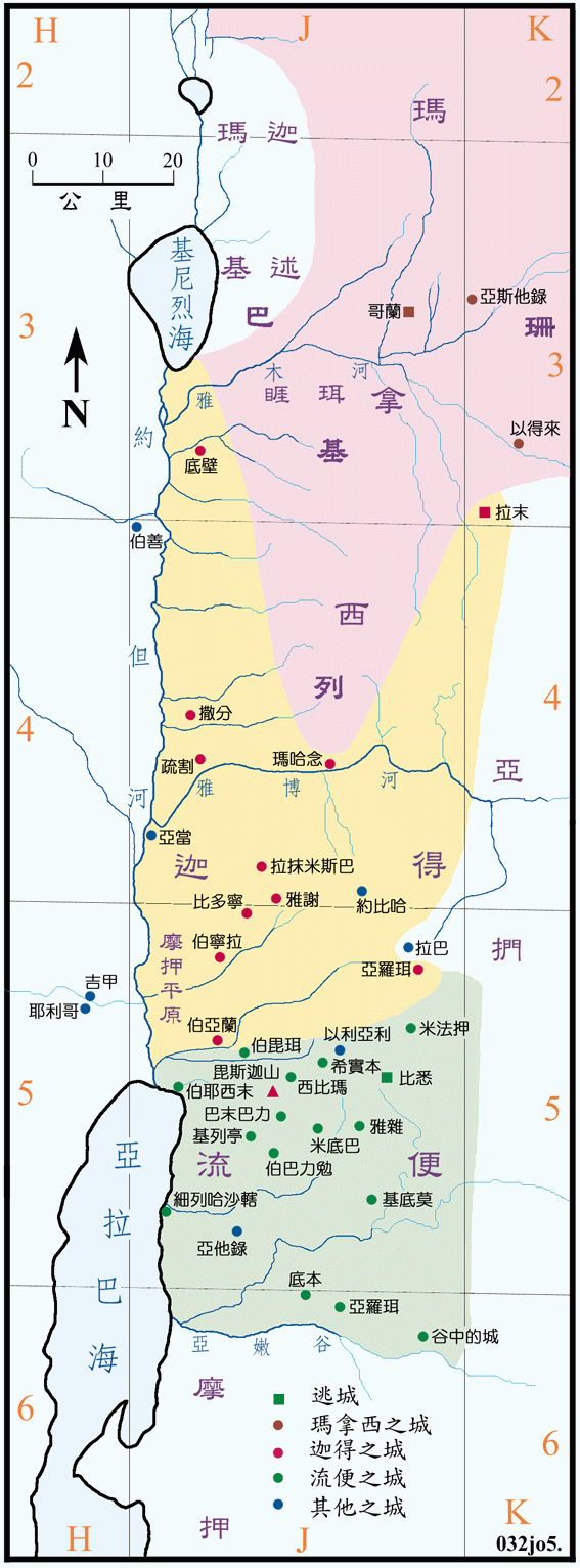 书图五 约但河东两个半支派的地业Land division of the east of Jordan River