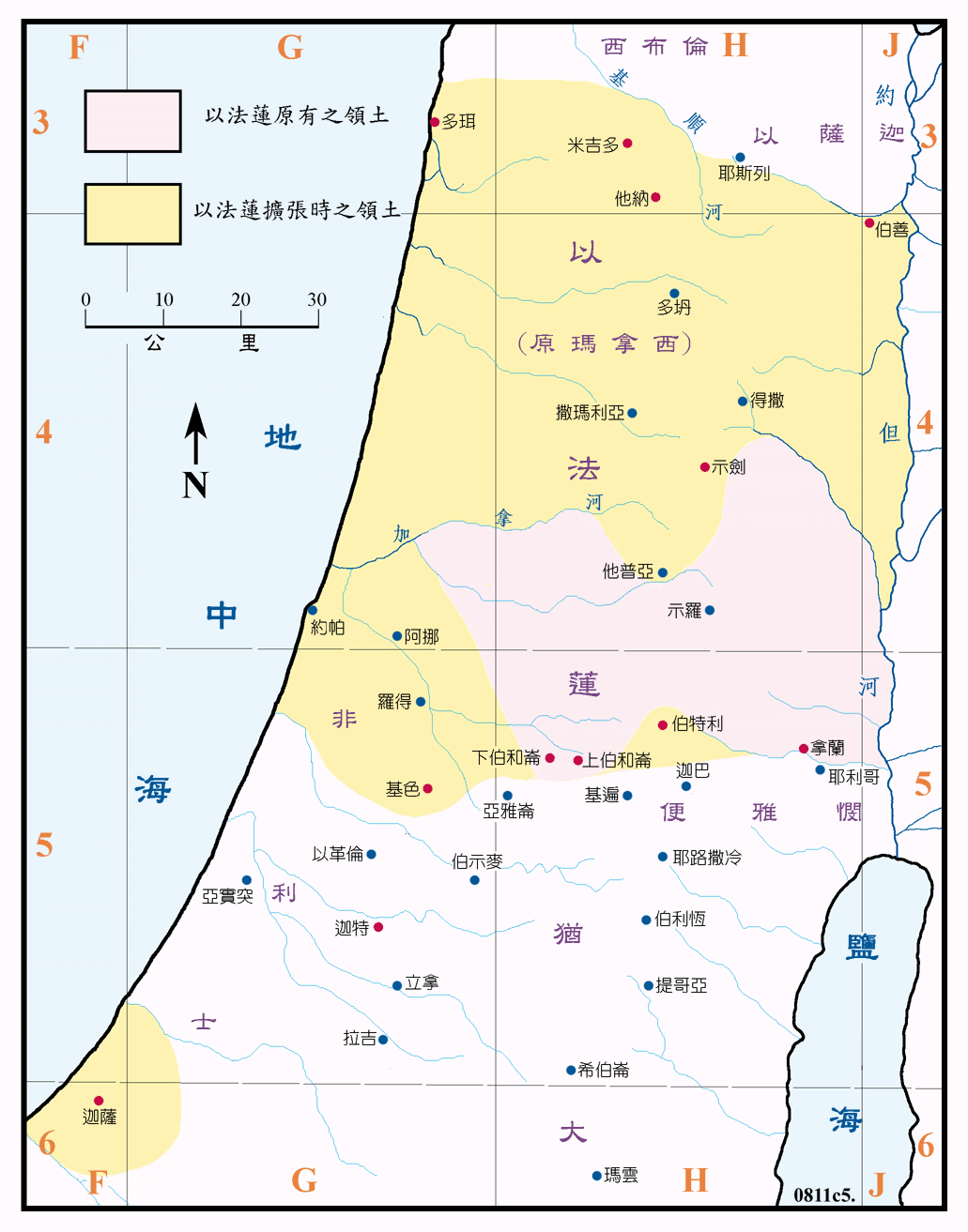 代上图五 以法莲支派占领之疆域Land of descendants of Ephraim