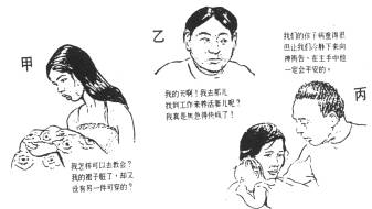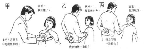 一点!下面三幅漫画中,那一个父亲(甲、乙或丙),是疼爱他的孩子的?