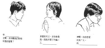 35.细看下面三幅图画,每一幅图均代表我们在本课所学过的三种祈祷里的一种。