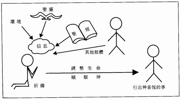 当人祷告时,神就在人的周围动工,圣灵、环境境遇、圣经及教会肢体向我们回应,以致我们明白它的心意,学习顺服,以致可行出它喜悦的事。