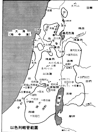 迦南与迦南的居民。巴勒斯坦是一片山势起伏的山地(请参上文第66、67、68页),所以适合一群小城邦国,多于一个统一的民族:它的地势方便独立发展,却不便于沟通往还。其中那些留下来 「试验」以色列的外邦人有「迦南人、赫特人、亚摩利人、比利洗人、希米人、耶布斯人」(三5)。我们对这些人有什么认识呢?