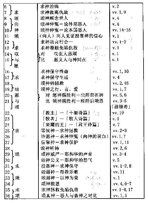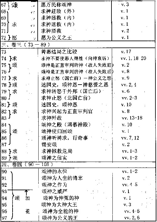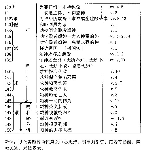 注1 读者可参必读之名作:桑安柱著「诗篇宝库」,甘霖出版社1970年版第83-88页。英文方面可参必读精研诗篇之巨作:Leupold Sabourin, The Psalms, Their Origin And Meaning,NY: Alba House,1974, 450pp.; E.W.Bullinger