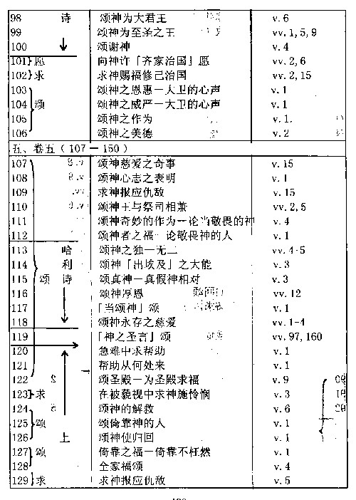 2 有关此题之研究必参Companion Bible, Bagster, 1969年再版。编者(E.W.Bullinger)不但对诗类文学极有研究,他以同样的方法把全部圣经每卷细析,为一本不可不读之精心 巨著。注