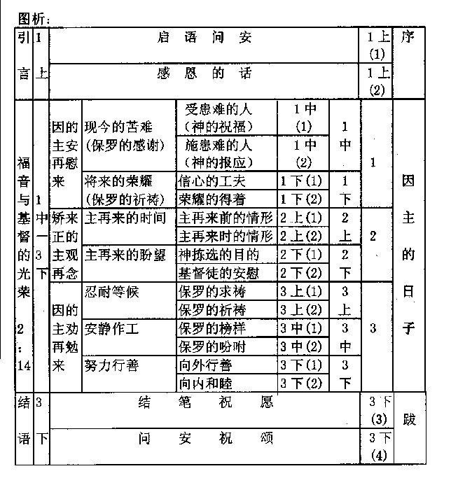 c.末世性(Eschatological)--帖前后。此组以再来(Coming)为中心。