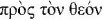 ( pros ton Theon),介词 pros 的用法表示“道”和“神”是同等的。(腓二:6)在希腊文里,“与”的介词还有 meta,sun,或 para。meta 是指“在。。中间”或“之后”;sun是指“紧密地联系”;para是指“在。。之旁”。约翰用的“pros”字却有亲密,面对面,和联合行动的意思。在约壹二:1,我们也看到相同的用法:“在父那里我们有一位中保,就是那义者耶稣基督。”(We have a Paraclete with the Father, 原文是 parakleton echomen pros ton Patera)